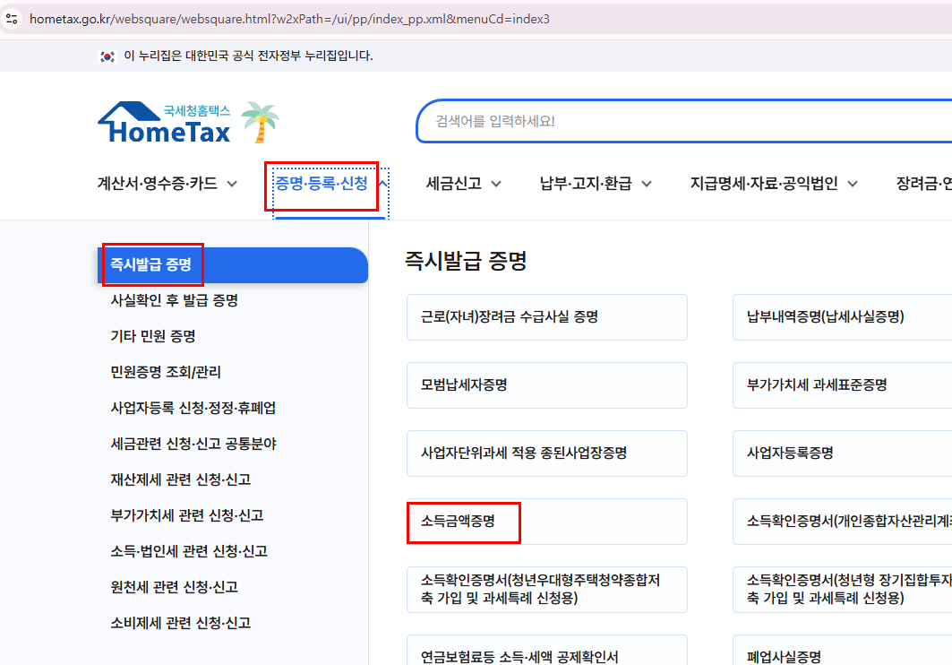 💻 홈택스에서 소득금액증명원 발급받는 방법