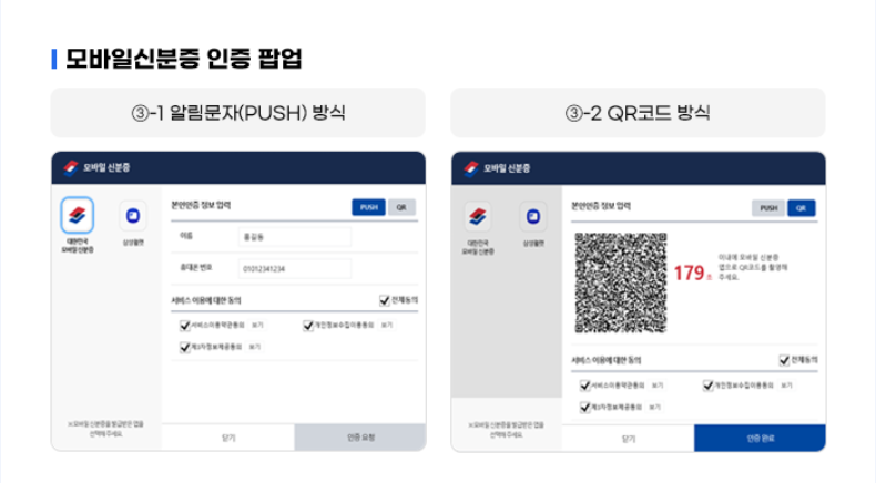 - 운전면허증: 모바일운전면허 앱 또는 PASS 앱